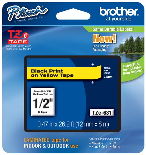 Brother Tape, Retail Packaging, 1/2 Inch, Black on Yellow (TZe631) - Retail Packaging Reviews